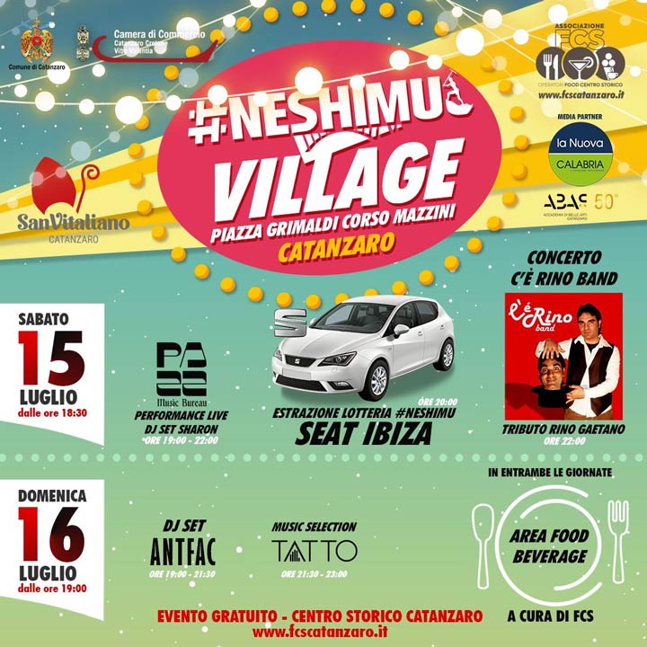 Sabato 15, alle ore 20, in piazza Grimaldi, ci sarà l’estrazione dei biglietti della lotteria #Neshimu. In palio, una Seat Ibiza offerta dalla concessionaria AutoSala e da Fcs e molti altri premi messi a disposizione dagli associati.