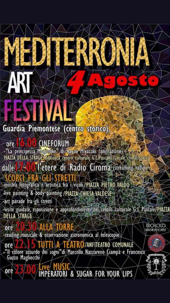 4 agosto – Si svolge oggi, a Guardia Piemontese, alle 16.00, il Mediterronia Art Festival”.