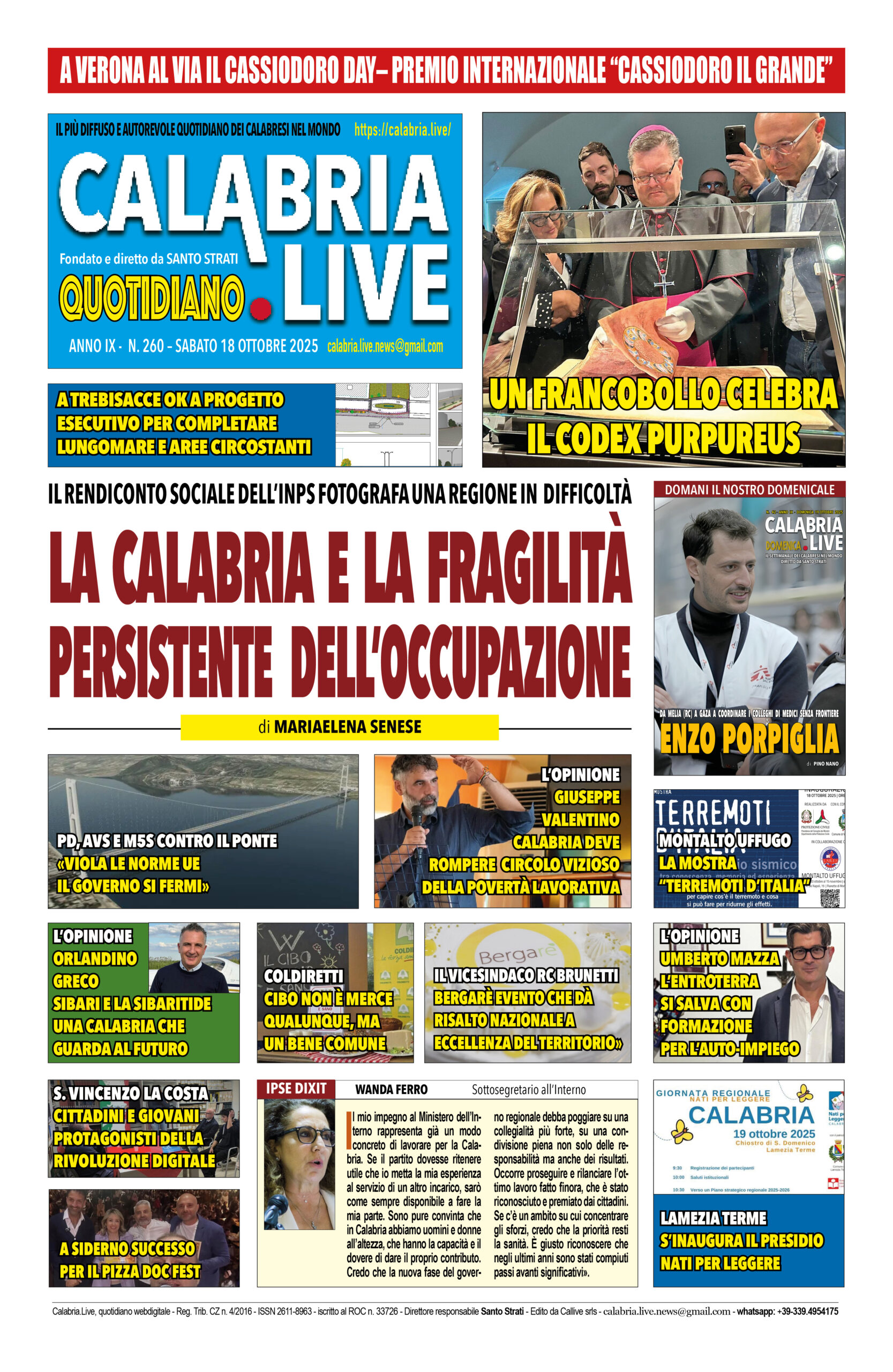 La UIL Calabria esprime forte preoccupazione anche alla luce dei dati emersi dalla presentazione del Rendiconto Sociale INPS Calabria 2024, che offrono una fotografia reale delle condizioni economiche e occupazionali della nostra Regione.