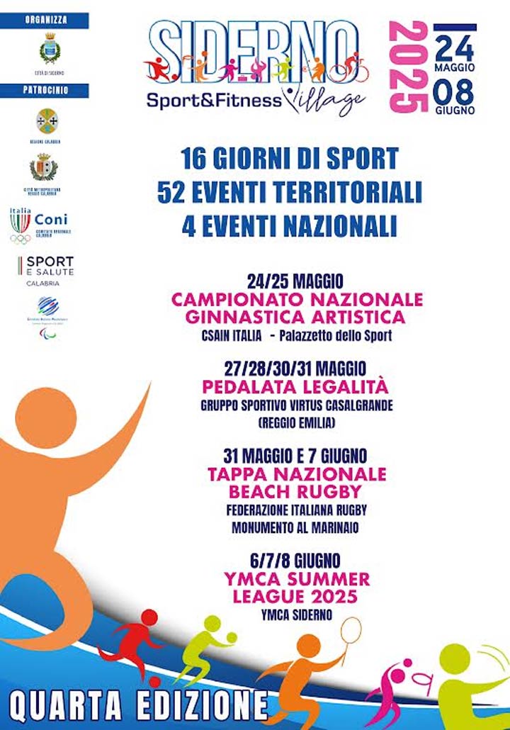 Domani a Siderno, prende il via la quarta edizione dello Sport & Fitness Village, organizzato dalla Città di Siderno col patrocinio della Regione Calabria, della Città Metropolitana di Reggio Calabria, dal Comitato Regionale Calabria del Coni, da Sport e Salute Calabria e dal Comitato Italiano Paralimpico-Regione Calabria.