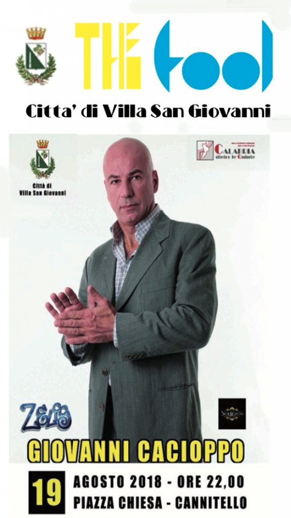 9 agosto – Stasera si conclude a Villa San Giovanni il cartellone di eventi organizzato dall’amministrazione comunale in collaborazione con la Pro Loco. Si chiude in bellezza con l’evento di punta che vedrà esibirsi il comico di Zelig Giovanni Cacioppo alle 22 in Piazza Chiesa a Cannitello.
